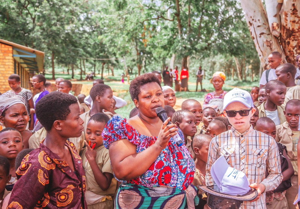 RUGOMBO, BURUNDI – As part of the KOMEZAWIGE program funded by Education Cannot Wait and implemented by RET in partnership with World Vision and Right To Play, children with disabilities and albino students in Rugombo, Burundi, received essential support tailored to their specific needs.